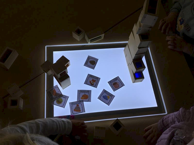 Beim Durchleuchten von kleinen Bildkarten wurden verborgene Gegenstände sichtbar, die ohne das Licht unentdeckt geblieben wären. Dabei konnten wichtige Begriffe rund um den Herbst spielerisch vertieft und erweitert werden.