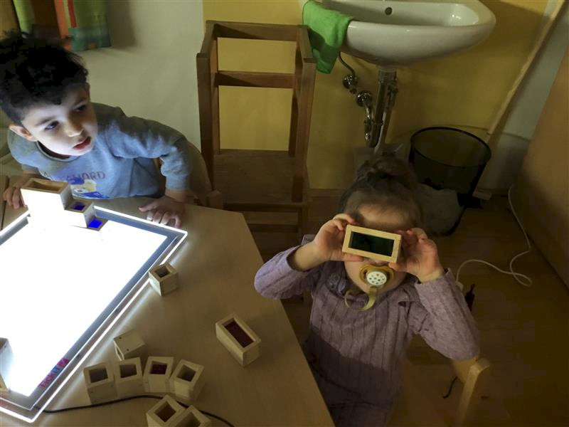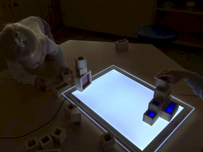 Im Rahmen einer spannenden Experimentierphase in der Gruppe 2 entdeckten die Kinder die faszinierende Welt des Lichts und der Farben am Leuchttisch. Durch das Zusammenspiel von Licht und bunten Fensterbausteinen entstanden leuchtende Farbenspiele, die großes Staunen und Interesse auslösten. Die Kinder erkundeten die unterschiedlichen Farbnuancen, bewunderten Lichtreflexe und setzten geometrische Plättchen kreativ ein, um Muster zu legen und Formen zu sortieren.