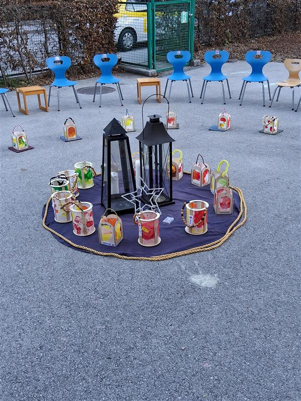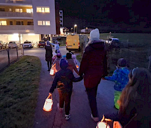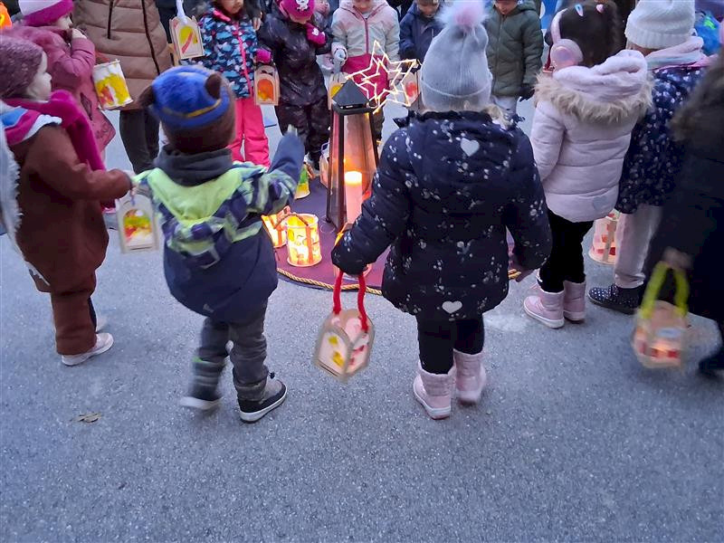 Im Garten versammelten sich die Kinder um eine große Laterne, sangen Lieder und tanzten einen Lichtertanz. Ein Höhepunkt war das Martinsspiel, bei dem die Bedeutung des Teilens lebendig wurde. Anschließend schlängelte sich der festliche Laternenumzug entlang der Salzach – die Lichter der Laternen erhellten die Nacht und sorgten für eine besondere Atmosphäre.