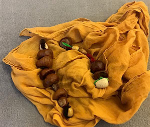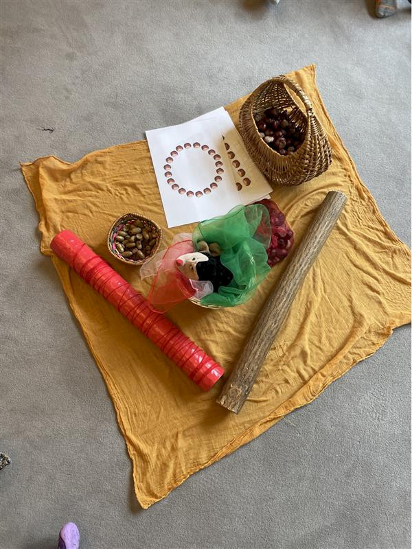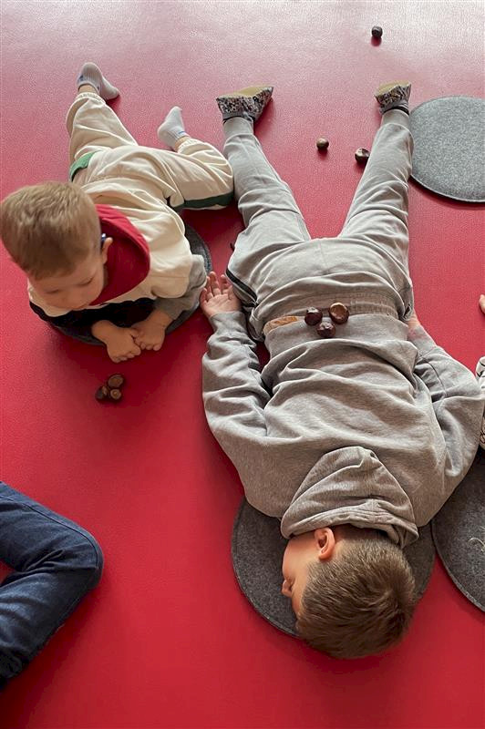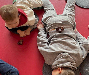 Die Kinder der Gruppe 3 sind erfolgreich in das neue Kindergartenjahr gestartet. Alltägliche Abläufe sowie die Gruppenregeln werden kindgerecht vermittelt. Dabei begleiten die Handpuppen Schlingel (Fuchs) und Isidor (Igel) die Kinder in ihren ersten Wochen. Gemeinsam mit den pädagogischen Fachkräften unterstützen die kuscheligen Gefährten die Kinder beim Erlernen von Liedern, Gedichten und Fingerspielen. Sie regen dazu an, sich mit den Phänomenen der Jahreszeit Herbst zu beschäftigen. Zusammen mit ihren Familien sammeln die Kinder fleißig Kastanien, die sie in den Kindergarten mitbringen. Diese werden in der Raumgestaltung und Aktivitätenplanung eingesetzt, um spielerisch verschiedene Kompetenzen zu fördern. Es entstehen Kastanienketten, es werden Kastanienmassagen durchgeführt und kreative Kastanienlegebilder gestaltet. Eine Kastanienwanne lädt zum sensorischen Erleben ein. Zusätzlich gestalten die Kinder individuelle Igelbilder aus ihren Handabdrücken. Die Formen und Strukturen von Herbstblättern lernen die Kinder durch Frottagetechnik kennen. Auch bei der Auswahl von Liedern, Gedichten und Sprüchen werden die Interessen der Kinder aufgegriffen.