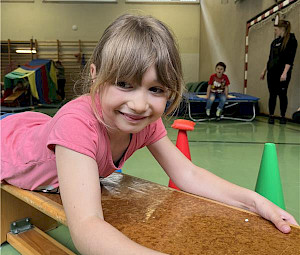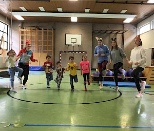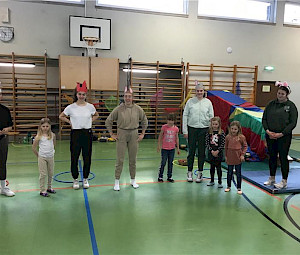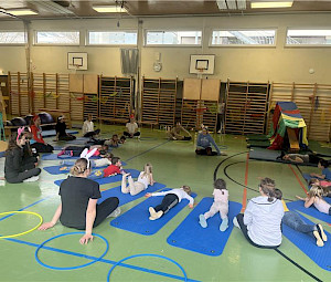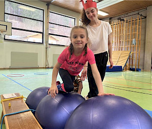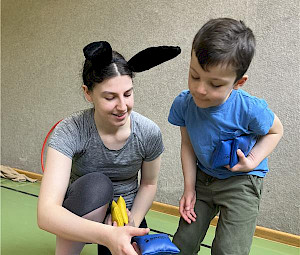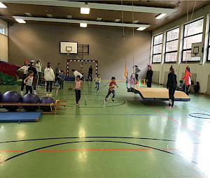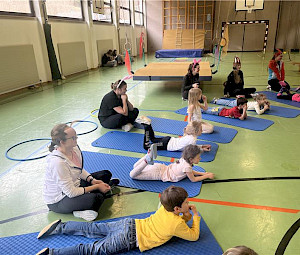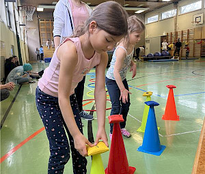Die 5B Klasse hat sich für unsere Schulanfänger eine Osterturnstunde im großen Turnsaal der Schule überlegt. Dieser wurde von den Schülerinnen, mit viel Kreativität und Liebe zum Detail, zu einer aufregenden Osterlandschaft umgestaltet. Gestaunt wurde das erste Mal, als die Kinder von den Schülerinnen als Hasen empfangen wurden. Neugierig und mit großem Eifer, durchliefen unsere Kinder einen Parcours, der ihnen neben Balance und grobmotorischer Geschicklichkeit, auch Ausdauer und Konzentration abverlangte. Abschließend waren sich alle einig ... das war sooo... cool!