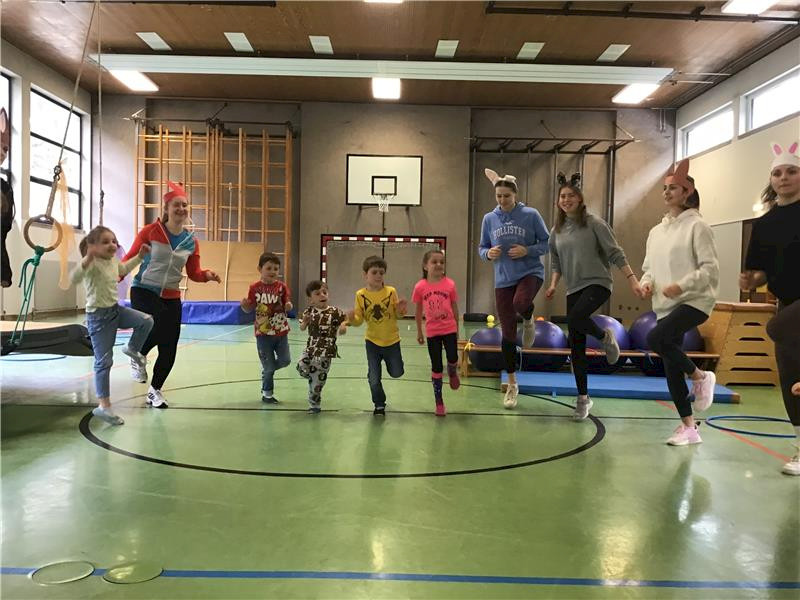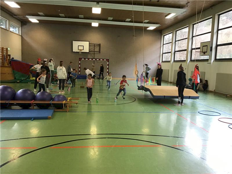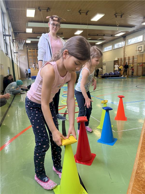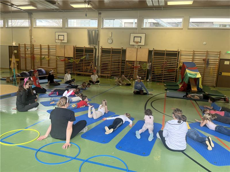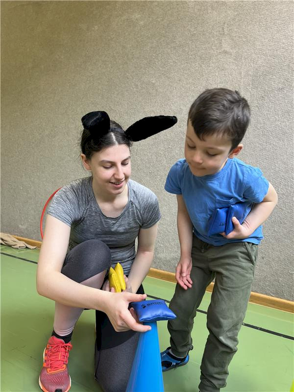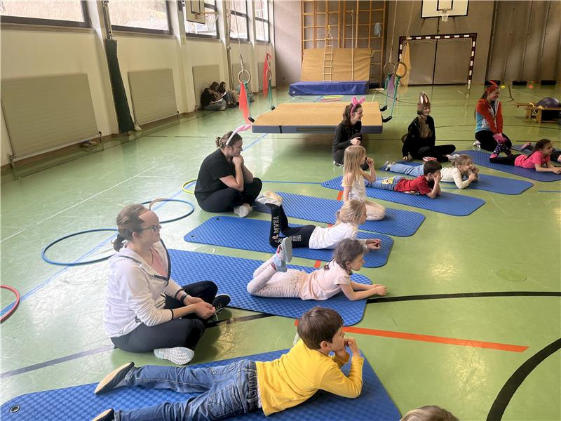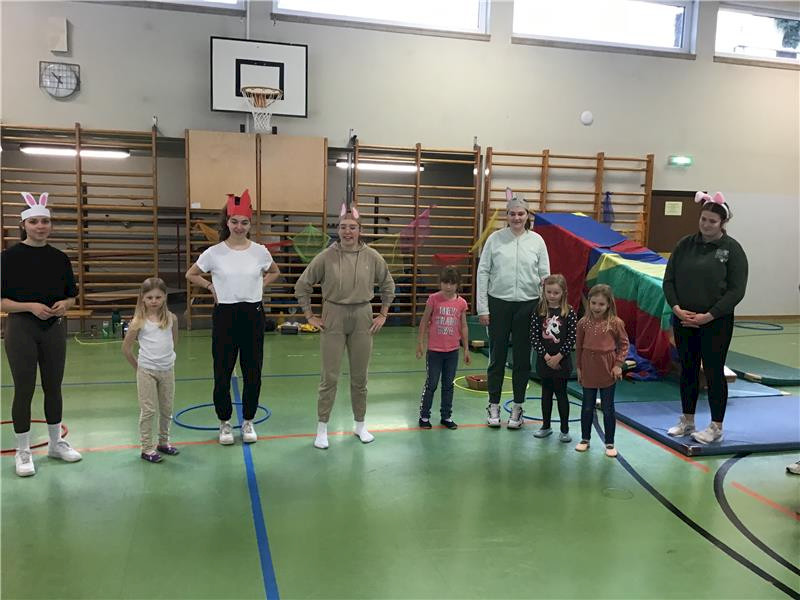 Die 5B Klasse hat sich für unsere Schulanfänger eine Osterturnstunde im großen Turnsaal der Schule überlegt. Dieser wurde von den Schülerinnen, mit viel Kreativität und Liebe zum Detail, zu einer aufregenden Osterlandschaft umgestaltet. Gestaunt wurde das erste Mal, als die Kinder von den Schülerinnen als Hasen empfangen wurden. Neugierig und mit großem Eifer, durchliefen unsere Kinder einen Parcours, der ihnen neben Balance und grobmotorischer Geschicklichkeit, auch Ausdauer und Konzentration abverlangte. Abschließend waren sich alle einig ... das war sooo... cool!